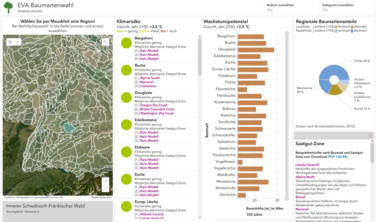 Baumarten verteilt sind. Bisher wurden vonseiten des Bundes nur Karten veröffentlicht, die aufgrund von statistischen Berechnungen den Flächenanteil der Baumarten zeigten. Die
